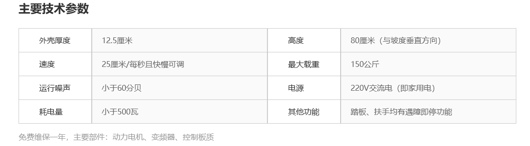 3,安全平稳。由乘客手控运行,运行速度由变频器控制,起动和停止渐快和渐慢,非常平稳;踏板和扶手遇障都会立即停止,踏板拨开也会立即